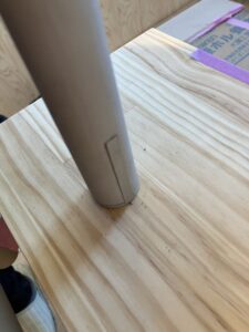 保育室の階段手すり施工中